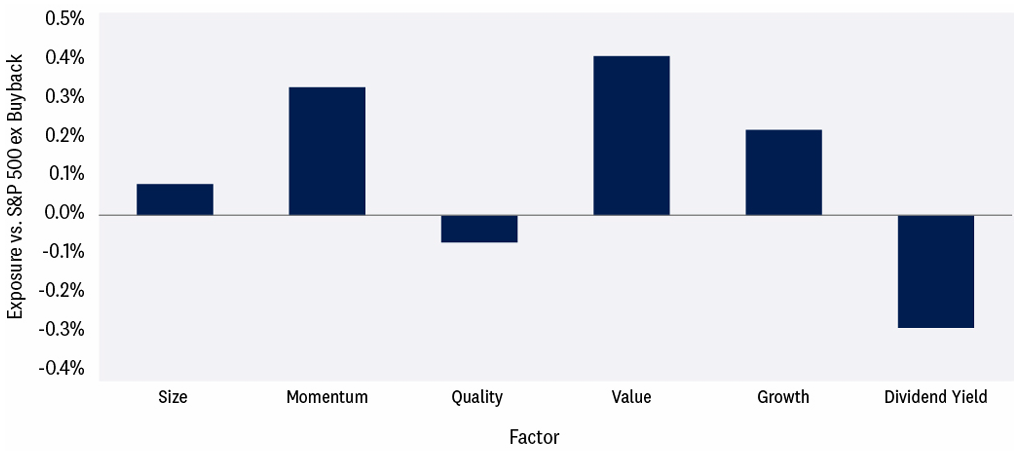 S&P Buyback Index Factor Tilts vs. S&P 500 ex Buyback Index
