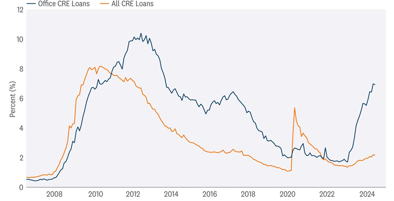 OFFICE COMMERCIAL REAL ESTATE (CRE) DELINQUENCIES (30+ DAYS) HAVE SPIKED